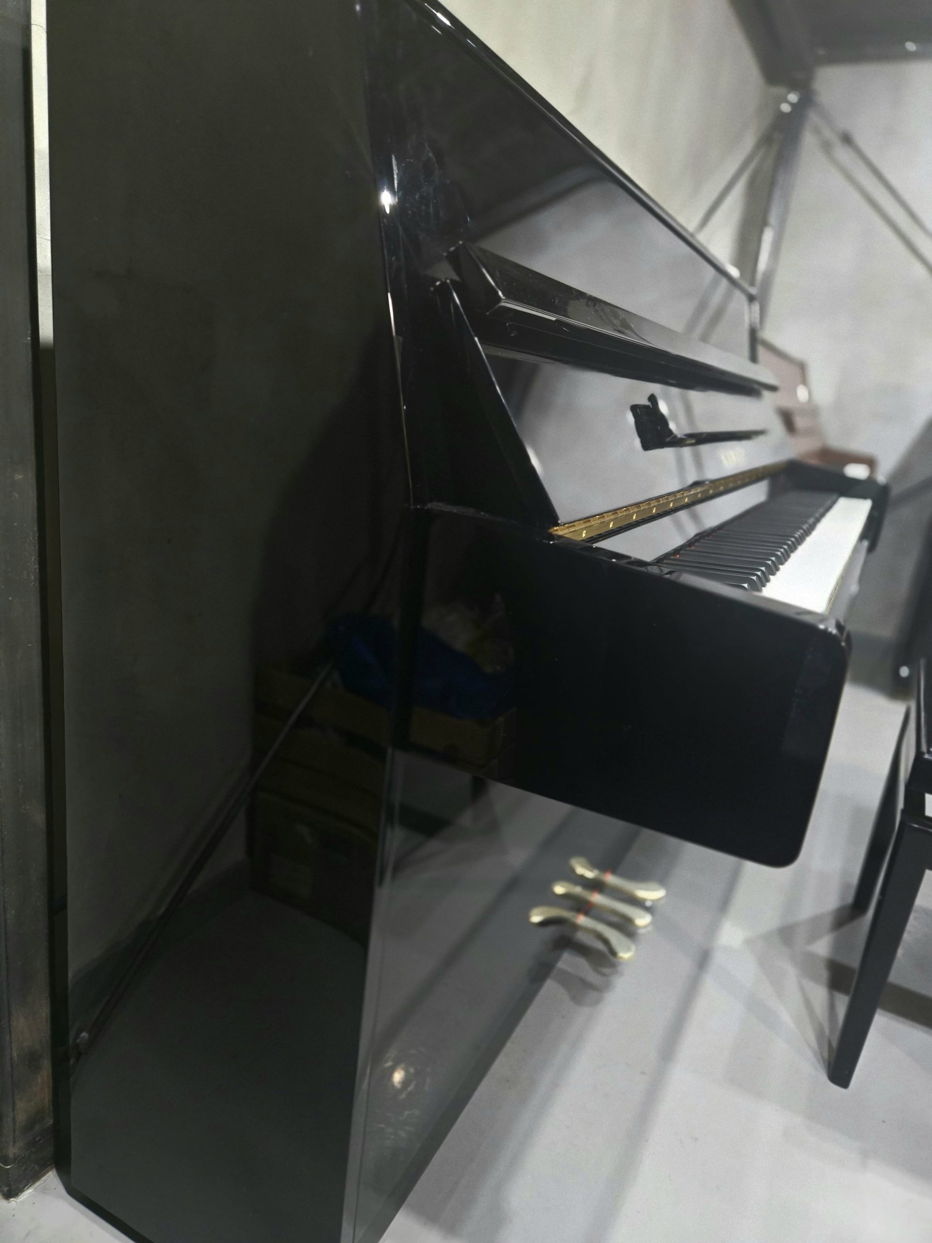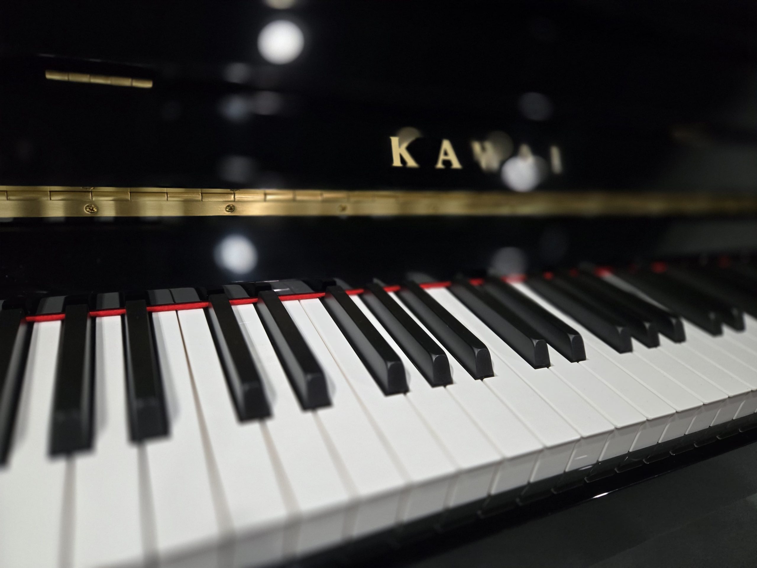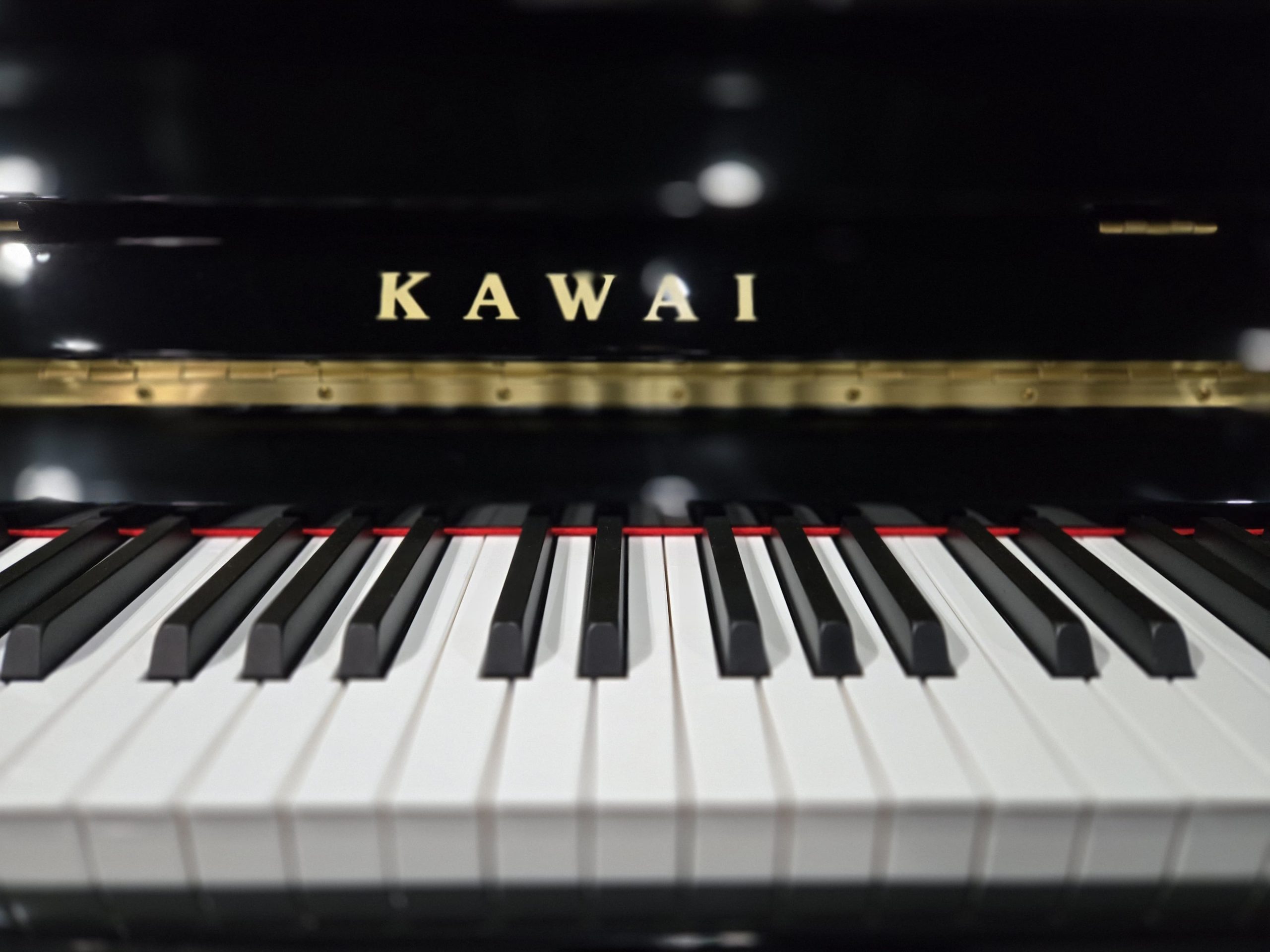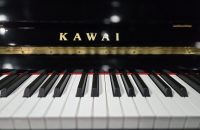Pianino w czarnym wysokim połysku, ze złotymi detalami, co sprawia, że jest bardzo eleganckie. Obudowa w stanie idealnym. Brzmieniowo doskonale sprawdzi się zarówno w małych jak i większych przestrzeniach, a także studiach muzycznych. Pianino jest bardzo, bardzo młode, produkowane w linii „nowej generacji” pianin KAWAI, co oznacza, że jest bardzo precyzyjne manualnie i czyste oraz stabilne w stroju. Klawiatura posiada specjalne doważanie czarnych klawiszy, by wyrównać ich wagę z klawiszami białymi (dłuższymi). Super pianinko, w bardzo użytkowym rozmiarze.